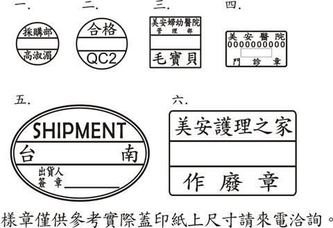 請注意, 下圖樣章的大小並非真正的蓋印紙上尺寸