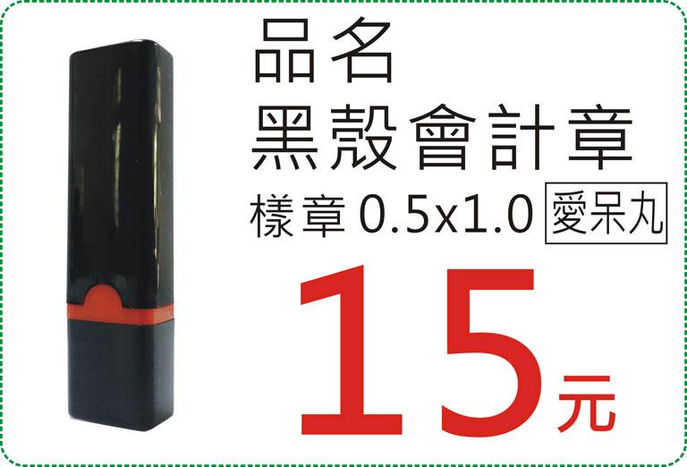 範例,黑殼會計章15元,限0.5x1.0cm,愛呆丸,少女體,橫式,有框,水性 紅色,限黑色,1