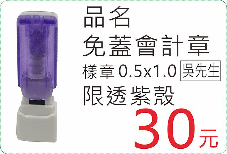 範例,免蓋會計章限透紫殼,限0.5x1.0cm,吳先生,少女體,橫式有框,水性紅色,限透紫殼,1