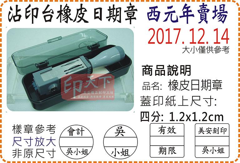 範例,四分橡皮日期章170元,1.2x1.2cm,圓形,美安,西元年,刻印