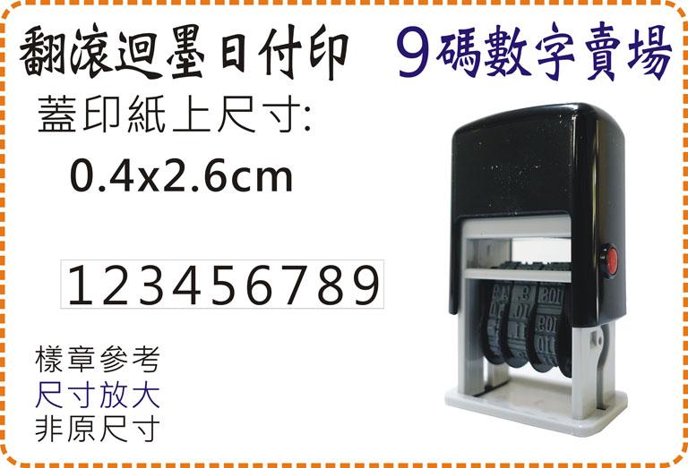 0.4x2.6cm 9碼數字翻滾迴墨日付印 |