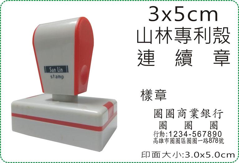 範例,3x5cm山林專利殼連續章250元,請拍照註明尺寸寄E-MAIL提供,楷書體,水性 紅色,1