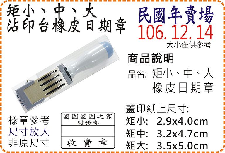 範例,民國年矩小、中、大橡皮日期章320元,矩小2.9x4.0cm,圈圈圈圈之家 財務部,民國年,收費章