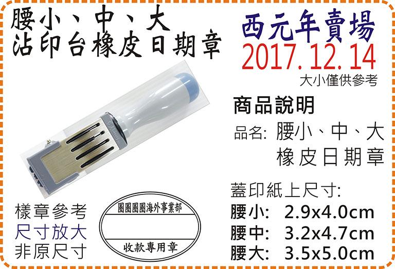 範例,西元年腰小、中、大橡皮日期章340元,腰小2.9x4.0cm,圈圈圈圈海外事業部,西元年,收款專用章