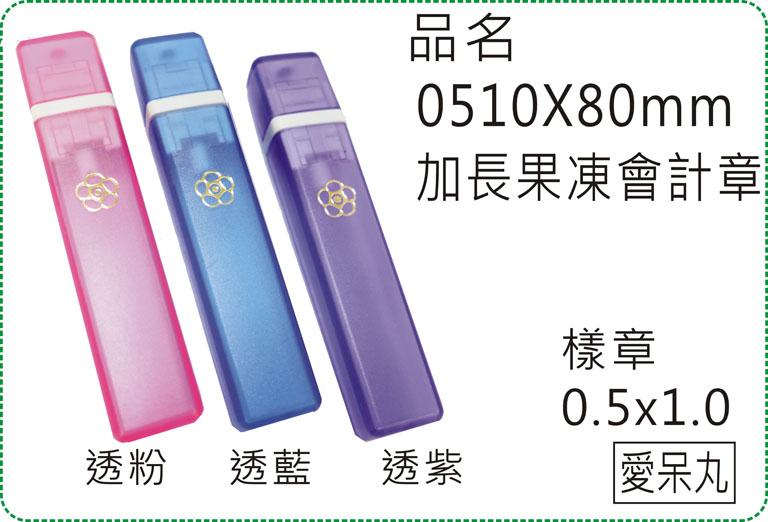 範例,0510x80mm加長果凍會計章45元,限0.5x1.0cm,愛呆丸,少女體,橫式,有框,水性 紅色,透紫色,1