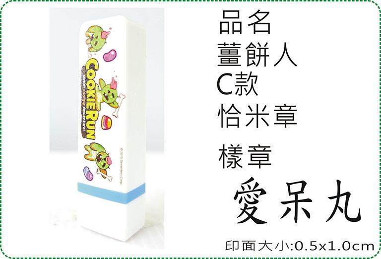 範例,薑餅人C款恰米章120元,限0.5x1.0cm,愛呆丸,少女體,橫式,有框,水性 紅色