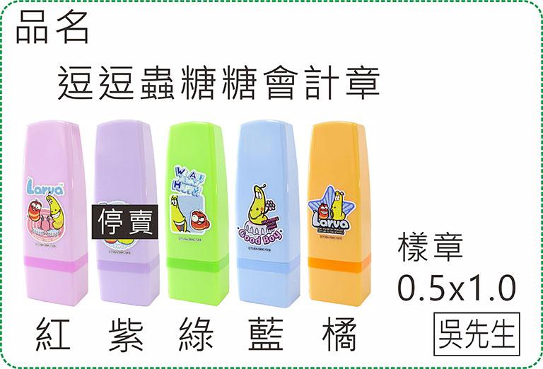 範例,逗逗蟲糖糖會計章,限0.5x1.0cm,吳先生,少女體,橫式,有框,水性 紅色,綠色,1