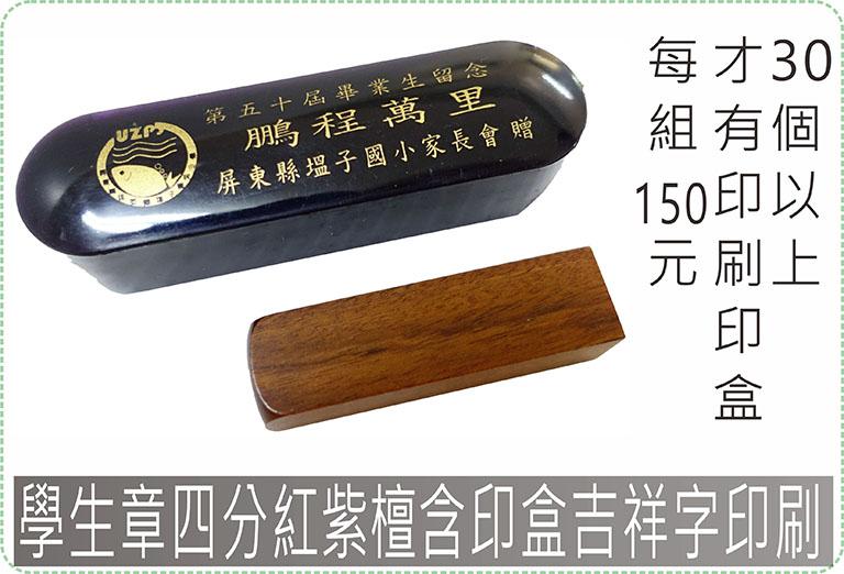 學生章四分紅紫檀含印盒吉祥字印刷, 美安刻印 |